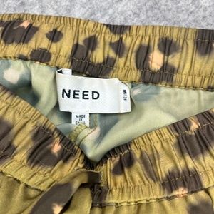 NEED Supply pants, polyester satin, drawstring with pockets. A really nice green color with a bit of gold in it. A bit of pulling at each pocket as shown.