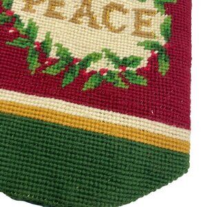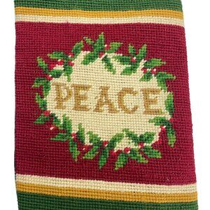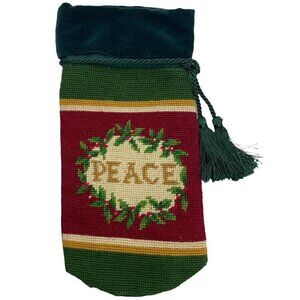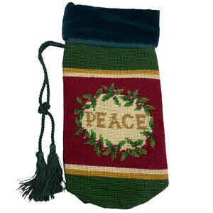 NEEDLEPOINT BOTTLE BAG Holiday Peace Design Christmas Holly Tassel ties