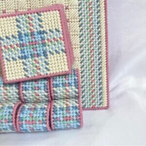NEEDLEPOINT Vintage 26pc Placemats Coasters & Napkin Rings Set