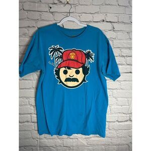 NEFF MEN'S LARGE GRAPHIC BLUE T-SHIRT W/ NEFF HEAD AND PALM TREES LOGO