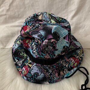 -BLUE MULTI MICKEY MOUSE GRAFFITTI PRINTED BUCKET HAT WITH ADJUSTABLE BLACK COTTON NECK TIE