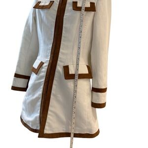 WHITE FABRIC AND SUEDE CAMEL TRIMMING