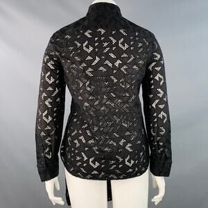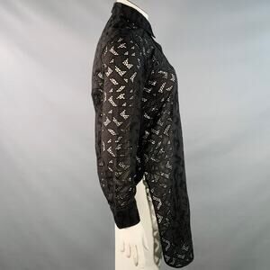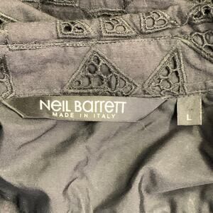 NEIL BARRETT Size L Black Cotton Eyelet Lace Asymmetrical Button Up Shirt