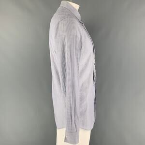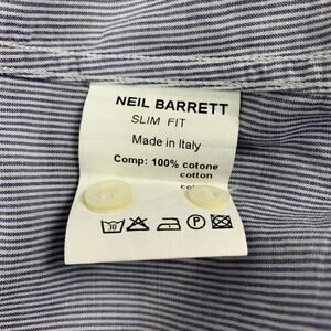 NEIL BARRETT Size L Blue Stripe Cotton Raw Edge Slim Fit Long Sleeve Shirt