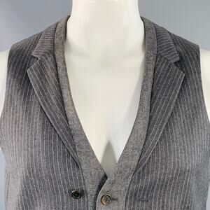NEIL BARRETT Size L Grey White Pinstripe Wool Double Breasted Notch Lapel Vest