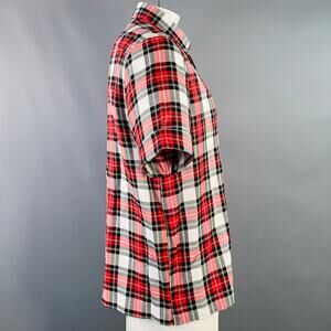 NEIL BARRETT Size XL Red Black White Plaid Cotton One Pocket Short Sleeve Shirt