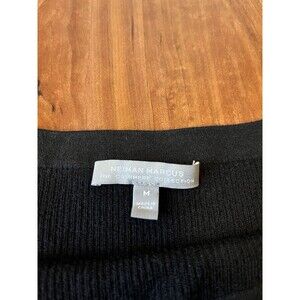 NEIMAN MARCUS 100% Cashmere Black Sweater M Silk Flare Bell Sleeve Boat Neck
