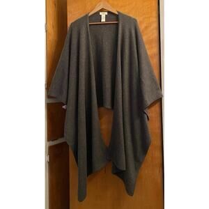 Gorgeous 100% cashmere in medium-dark Heathered gray. Open poncho with draped fit.