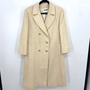 NEIMAN MARCUS 100% Pure Wool Cream Double Breasted Long Line Trench Coat L / XL