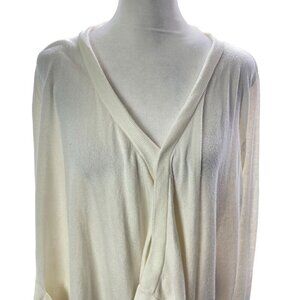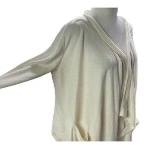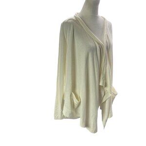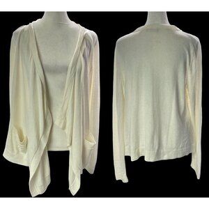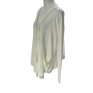 NEIMAN MARCUS Cardigan Sweater Open Front Long Sleeve Pockets White XL 40-8