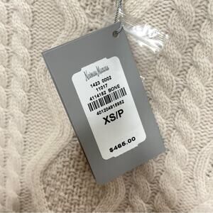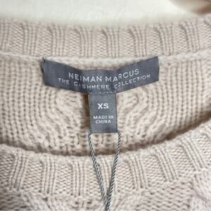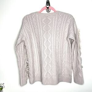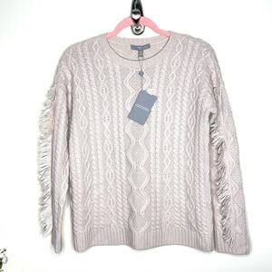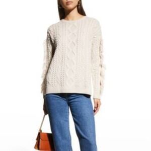 NEIMAN MARCUS Cashmere Collection Cable Knit Sweater Fringe Trim Bone Ivory VV7