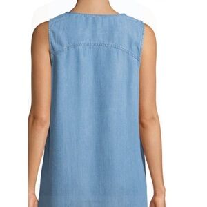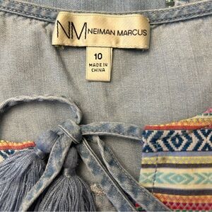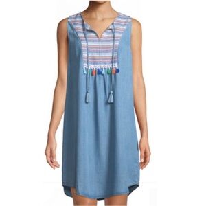 Nice Neiman Marcus chambray tassel embellished sleeveless tunic-style shift dress