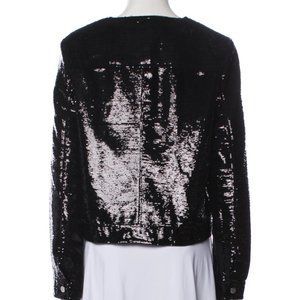 Neiman Marcus Evening Jacket, Black, Sequin Embellishments & Collarless, Flap Pockets & Snap Closure