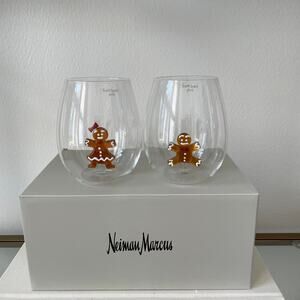 NEIMAN MARCUS Gingerbread Man Stemless Wine Glass Set of 2 Holiday Barware