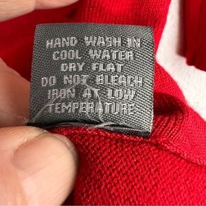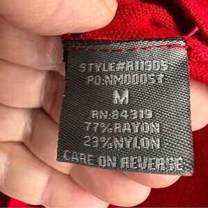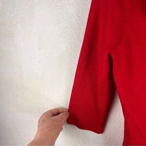 NEIMAN MARCUS Knitted ¾ Sleeve Top with Faux Leather Trim. Red w/Black. Medium