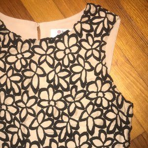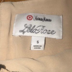 Classic & pretty top by NEIMAN Marcus Lela Rose collection. Pretty crochet Rose pattern outer. Shell is tan silk/cotton blend. Lining is poly. Keyhole back with button closure. Excellent preowned condition without flaws. Size Small