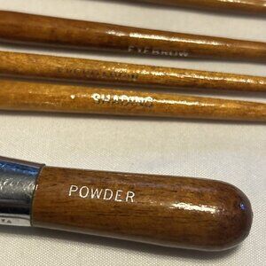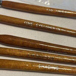 NEIMAN MARCUS Makeup Brush Set of 6 pieces Brown Wood Handles 4” Long New