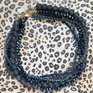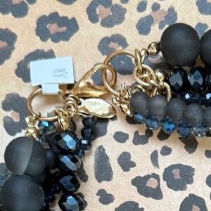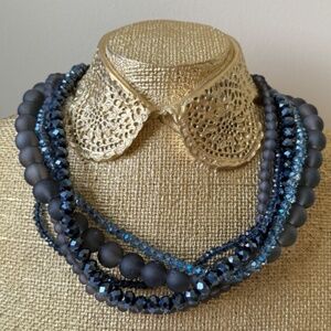NEIMAN MARCUS Necklace Beaded Glass Five Strand Blue Gray Gold 18"-21"