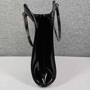 NEIMAN MARCUS VINTAGE TOTE – 1970s BLACK PATENT VINYL – LUCITE DOUBLE HANDLE – STRUCTURED PURSE – 11×9×3"