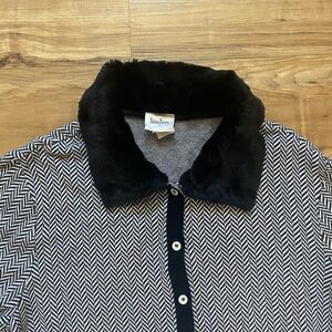 NEIMAN MARCUS VTG XL Faux Fur Trim Button Up Cardigan Shacket Houndstooth Retro