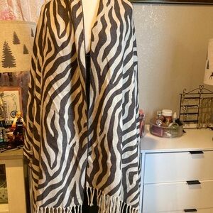 Add a touch of wild elegance to your home with this zebra print throw blanket. Featuring a stylish black and cream design, it's perfect for any living space.