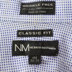 NEIMAN MARCUS Men's Blue Small Checker Oxford Shirt Size 15.5