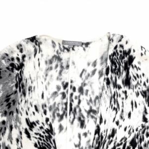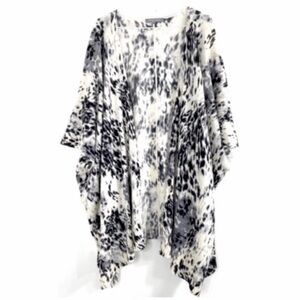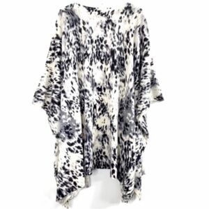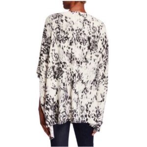 Neiman Marcus 100% Cashmere Leopard Open Front Long Cape Shrugs Cardigan in White, Black