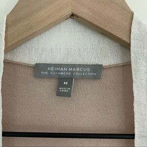 NEIMAN Marcus Cashmere Collection Chiffon-Trim Open-Front blush Cardigan medium