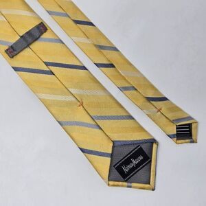 NEIMAN MARCUS SILK TIE YELLOW BLUE SATIN REPP STRIPE TEXTURED 3.25" X 61"
