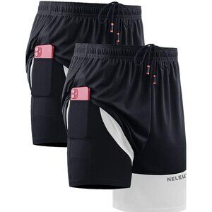 NELEUS 2-Pack Men's 2 in 1 Running Shorts w/ Liner Dry Fit w/ Pocket Sz. XL NEW