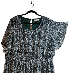 NEMIDOR WOMEN'S DRESS 24 LINED GREEN WHITE BOHO FIT N FLARE SHORT BELL SLEEVE