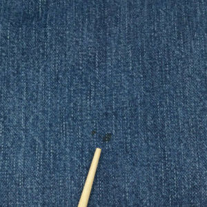 Gently used, no holes or tears. Few small brown stains at the front right leg near the hem, see last photo.