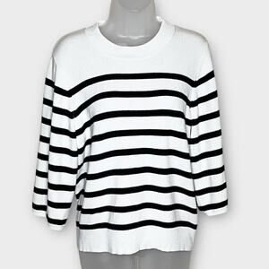 NEO NOIR white & black stripe 3/4 wide sleeve sweater size medium classic spring