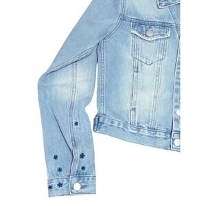 Add a touch of rockstar style to your wardrobe with this NEON BLONDE Rebel Starstruck Denim Trucker Jacket! This light wash denim jacket features embroidered stars and a classic trucker silhouette with a defined waist and button cuffs. It's brand new with tags and comes from a smoke-free home.