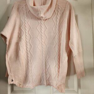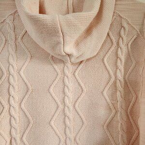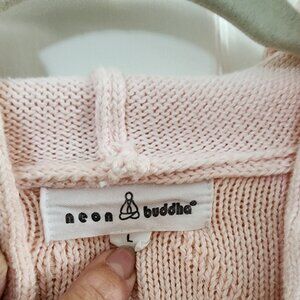 NEON BUDDHA CABLE-KNIT PINK SWEATER WITH HOOD