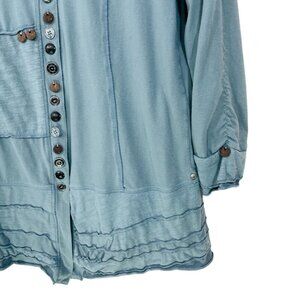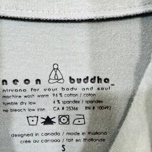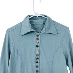 NEON BUDDHA Size S Tunic Top Sage Green Mix of Buttons Stitch Artsy Boho Cotton Stretch