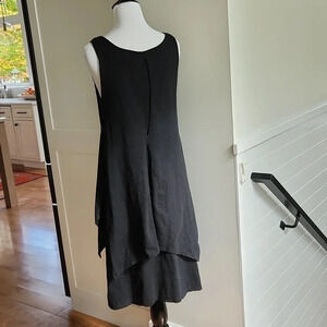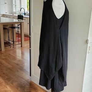 A fun summer tank dress in a size small! The dress is an original tank dress with a darling layered pinafore style top. Slits, gaps and pointed hems make up this dress. It's in black and a nice cotton knit. Owned only by me.