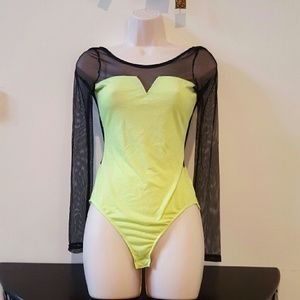 Attempted to try this on a few times and it just didn't work out, lol. Marked as an XS but I think to fit comfortably it should actually be an XXS. 2-button closure at the crotch. 76% poly, 20% rayon, 4% spandex. There is a tiny orange mark on the left side of the bodysuit that I took a photo of-not sure why it's there b/c I haven't used it. Just a disclaimer. Smoke-free home*