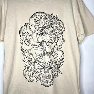 NEON RIOT SKULL LION GRAPHIC TEE T-SHIRT SIZE LARGE
