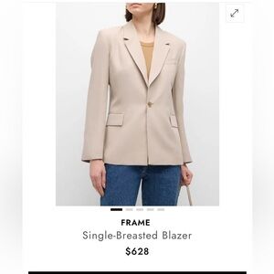 BRAND NEW. Never Worn. Shopper tags removed. Chic and versatile blazer by Frame Denim. Ideal for any occasion. Features a single-button closure and tailored fit.