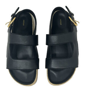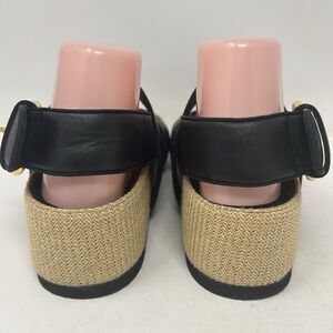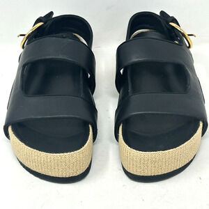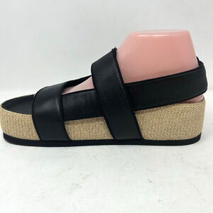 NEOUS Chunky Platform Sandals Black Leather Gold Buckle Boho Raffia EU 40 US 10