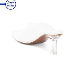 sheer mesh front, open back, lightly padded leather footbed, acrylic heel, size chart conversion may vary slightly by country