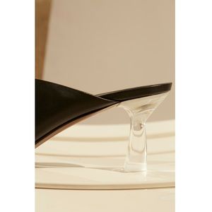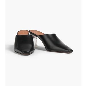 A transparent heel adds an elegant, modern flourish to this impeccably crafted square-toe mule. Polished with a slightly squared toe, this mule is accented with a tapered translucent heel to bring a modern aesthetic to your closet.
