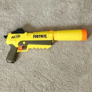 Get ready for high-energy adventures with this eye-catching NERF Fortnite blaster! Featuring a bold yellow and orange design, this toy captures the spirit of the iconic video game and brings it into the real world. Perfect for young gamers, collectors, or anyone who loves action-packed fun. Silencer can be removed.