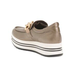 NEROGIARDINI Bronze Made In Italy Leather Chain Platform Slip On Shoes