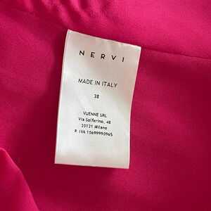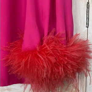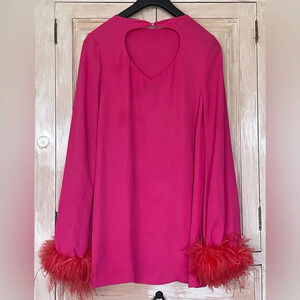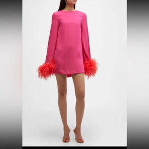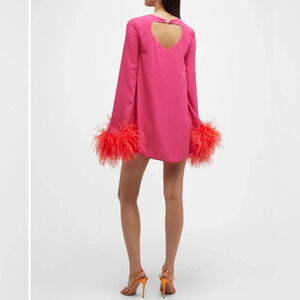 Crafted in Italy from fluid lightweight georgette, this fuchsia minidress from Nervi is defined by its tonal feather-trimming at the cuffs for a whimsical and celebratory appeal.