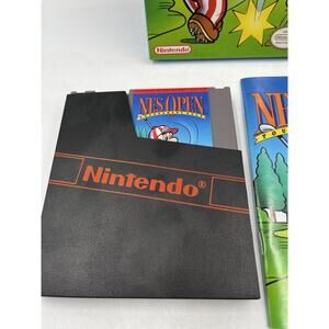 The NES Open Tournament Golf Complete in Box (CIB) for the Nintendo NES console, released in 1991 by Nintendo, offers players the opportunity to enjoy a multiplayer golfing experience. This sports game features comprehensive gameplay, including a manual, and supports up to two players. The game follows the theme of an open tournament, allowing players to compete against each other in various golf challenges. With its nostalgic appeal and classic gameplay, NES Open Tournament Golf is a must-have for fans of retro video games looking to experience the beloved sport on the NES platform.