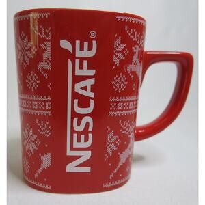 NESCAFE Coffee Mug Christmas Winter Reindeer Red White 11 Ounces Snowflakes