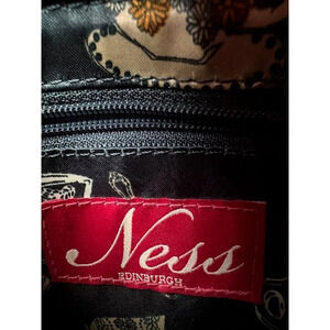 This is a gorgeous 70% wool plaid tweed crossbody satchel style messenger bag by Ness. The bag has lovely detailing with one main compartment and flap over front with feature buckle. The bag has an adjustable shoulder/crossbody strap and can be worn on the shoulder or crossbody style. The bag has a soft shell in a textile wool main in brown, navy, yellow, aqua and pink with contrast pink PU leather trim. The Ness branding can be found imprinted onto a metal buckle on the front, into the metal zip pullers and badge on the inside. The interior is in a contrast tea cup print lining and is clean with no discoloration. Overall the bag is in very good condition with light general wear and hardly used. Please see pictures for more details.