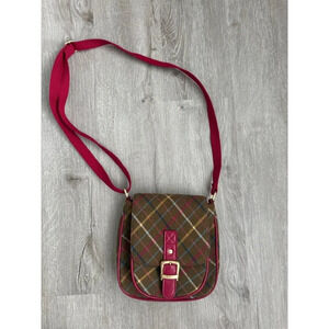 NESS Wool Rich Check Crossbody Bag Satchel Messenger Shoulder Pink Leather Trim